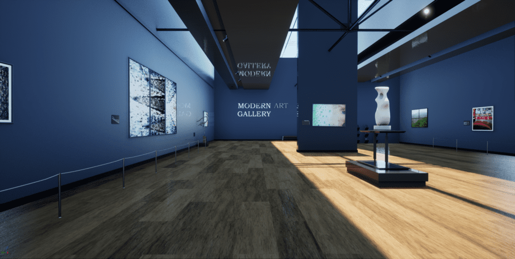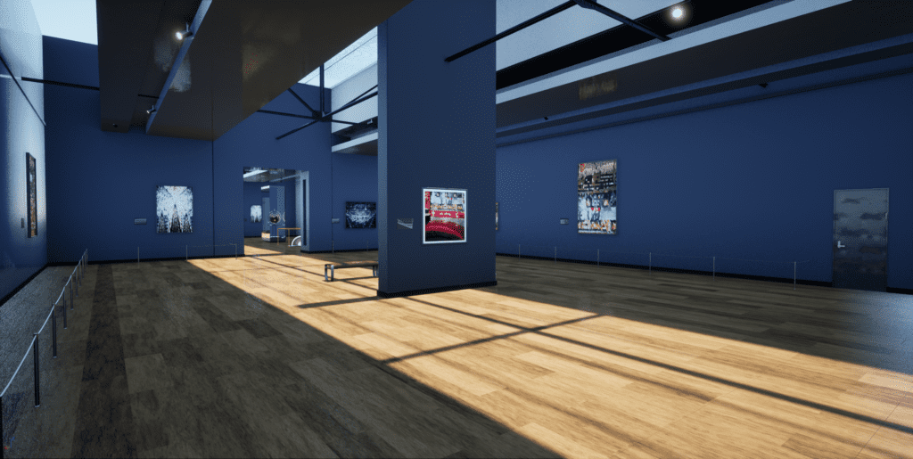 An art gallery setting with customisable wall art. Ideal combined with pedestal foreground art to bring your scene together seamlessly. Very cost effective when compared to booking a real art gallery location with real artworks and the obvious restrictions this brings. Offers a really creative space with the ability to tailor the artworks to your own product.